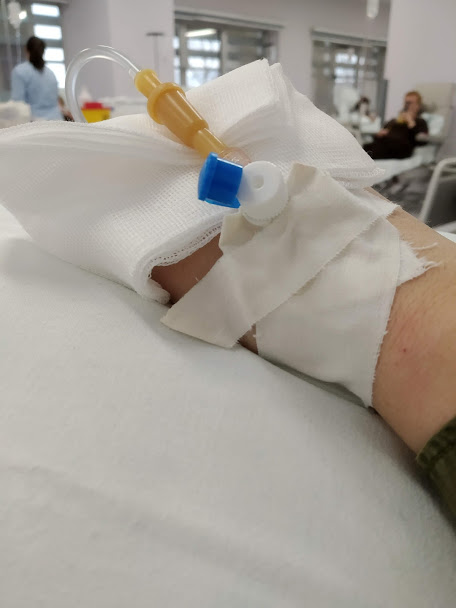 Došla je srijeda, vrijeme za vađenje krvi. Znači vrijeme za sve igle. Dolazim vadim krv, nalazi su za dva sata. Ja lagano idem na posao. Koliko god sve jela i koristila što je bitno za krvnu sliku, bojim se uvijek kakvi će biti. Dolazim po nalaze, krvna slika je ODLIČNA kao i svaki put. Znači sutra primam bez problema četvrtu terapiju. Vraćam se na posao, izlaskom iz tramvaja iskrenem zglob po ko zna koji put ( zglob koji je bio u gipsu ). Vraćam se na posao. Završava se moje radno vrijeme, došlo je vrijeme za moje premedikacije i bodenje moje guzice.