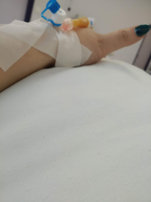 Odlazim na inekciju, vozi me tetak. Dolazim kući, već sam u krevetu. Treba ujutru rano ustati. Tetak dolazi po mene idemo u hitnu, primam inekcije. Vraća me kući, jer sam tek u 10 naručena. Jedem, onda opet krećem prema onkologiji. Dolazim gore, predajem papire. Prepoznala me je jedna od žena koja čita moje blogove koja isto dolazi na onkologiju. Tako mi je bilo drago što sam je srela. Proziva moje ime Nikolina, ulazim unutra. Gleda mi nalaze, kaže sve je dobro samo malo pojačaj eritrocite ( znači još više cvekle ). Spomenem da idem sutra na ultrazvuk. Pitam je za premedikacije do kada ih primam ( dexametazon ). NEMA VIŠE INEKCIJA, NEMA VIŠE IĆI U HITNU. Koje je to olakšanje, dan mi se popravio automatski. Prepisuje mi terapiju. Izlazim nasmijana. Ali samo mislim o sutra, šta će ultrazvuk da pokaže.